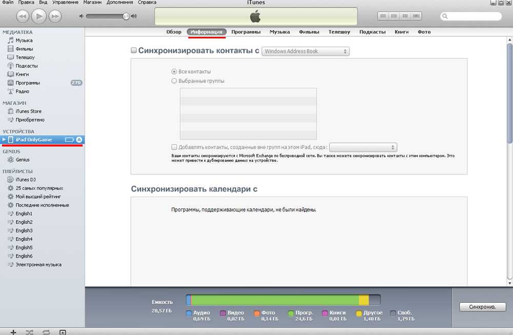 На видео продемонстрировано, как обычно происходит синхронизация iPad с iTunes: