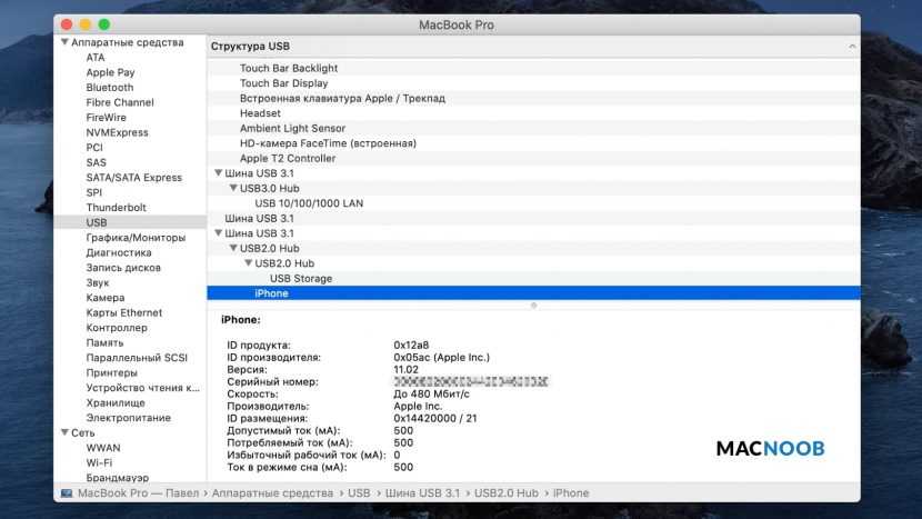 В разделе «Аппаратные средства» откройте раздел USB и в правой части окна должен отображаться ваш iPhone, iPod либо iPad.