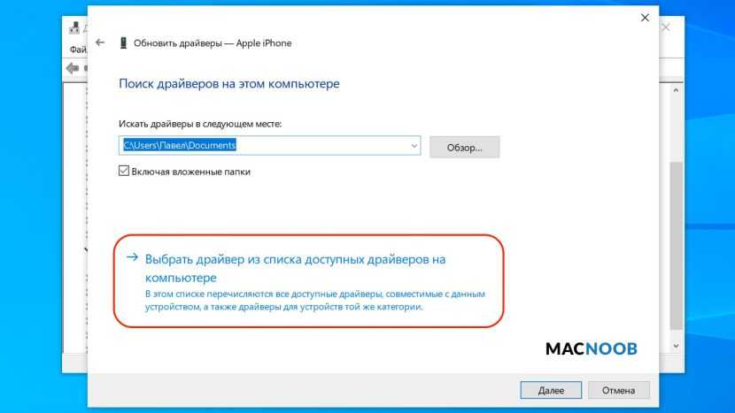 В этой папке находится файл драйвера с именем usbaapl64.inf или usbaapl.inf . Выбираем его и устанавливаем.