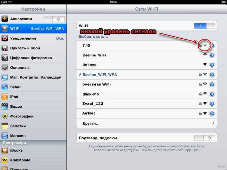 Проблемы с аппаратной частью редко приводят к тому, что Айпад не видит вай фай – причина чаще в ошибке ПО. Иначе обстоят дела с Ipad mini – его конструкция более хрупкая, механическое повреждение при ударе может отразиться на приеме сигнала беспроводных сетей.