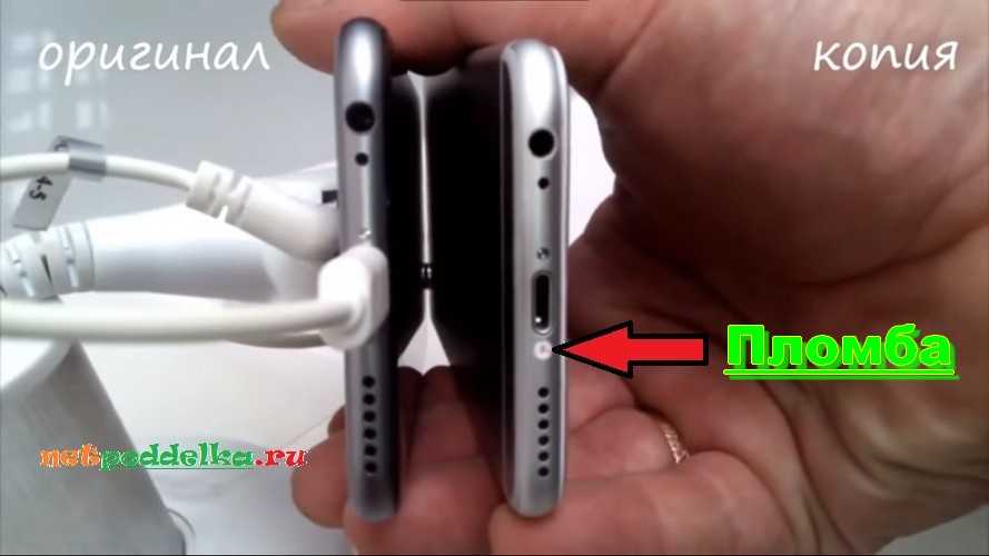 Отсоединить заднюю панель Айфона 6s можно только после откручивания двух винтов на нижнем торце устройства. Никаких пломб на болтиках у оригинала нет. Съемная задняя крышка также является явным признаком, по которому легко вычисляется iPhone 6s подделка.