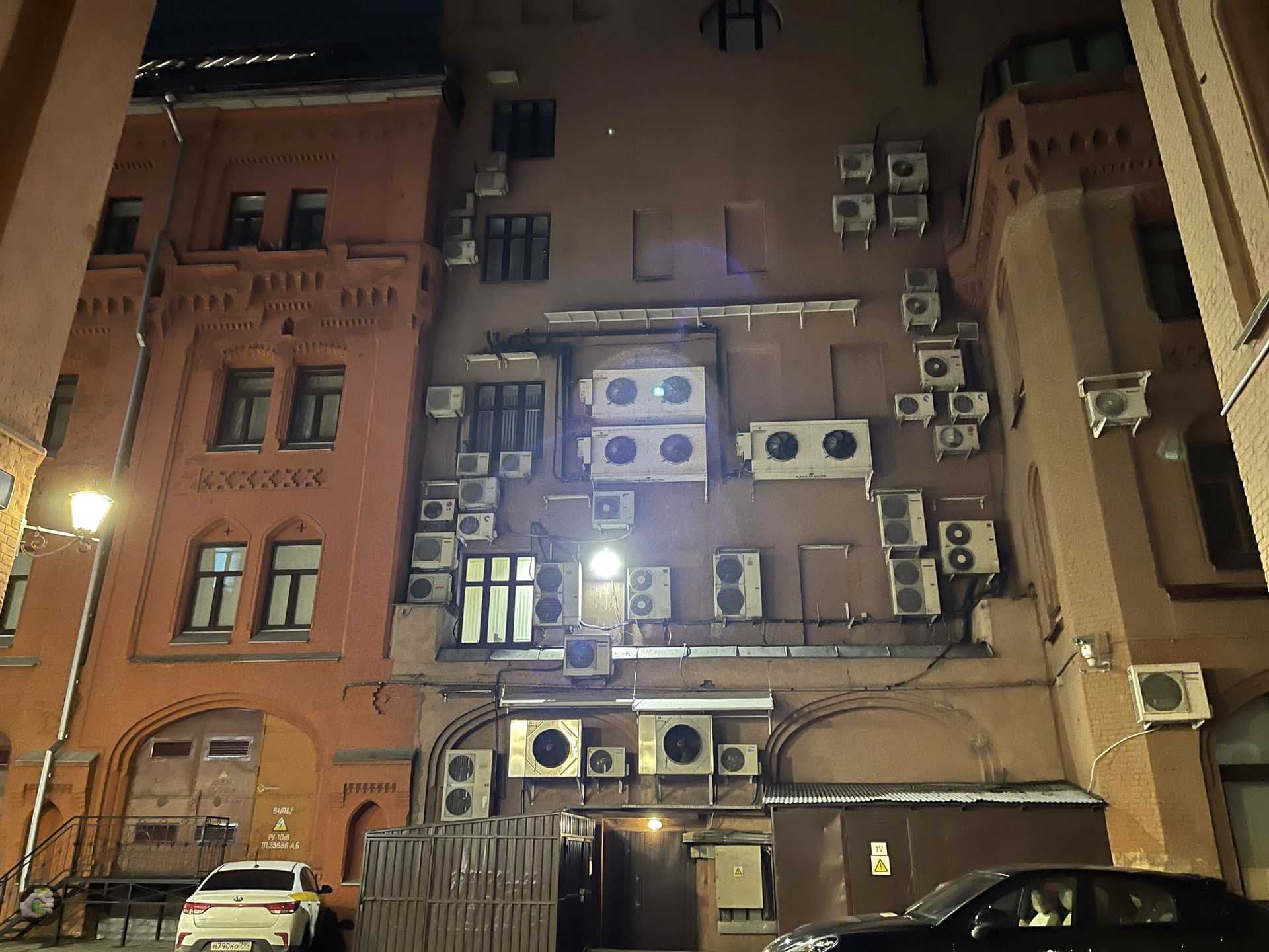 А вот стену кондиционеров даже с десятой попытки снять нормально не получилось. Правда, там было очень-очень темно: