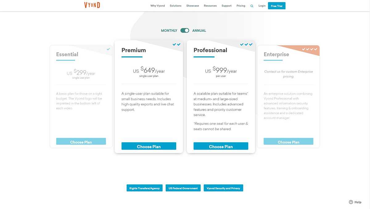 Vyond не предлагает бесплатную учетную запись, но дает бесплатную пробную версию с широким набором функций, чтобы вы могли протестировать ее и получить представление о программном обеспечении.