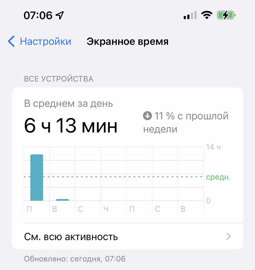 Только посмотрите на это – в среднем мой айфон работает 6 часов в сутки чистого времени! У кого больше?