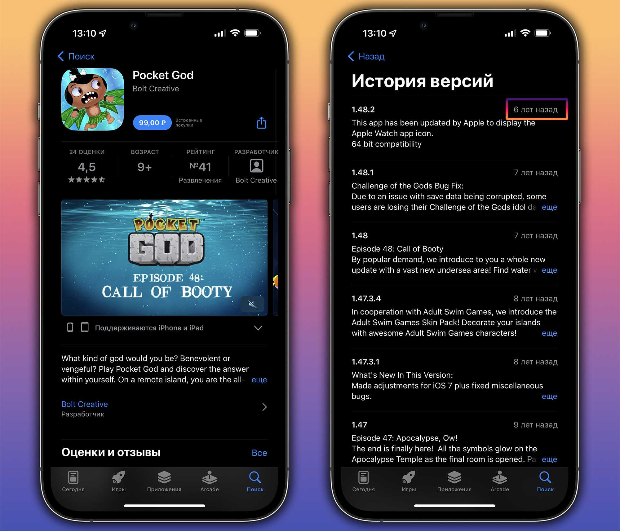 Так как Pocket God скачивают до сих пор, приложение остаётся в App Store – несмотря на отсутствие обновлений уже 6 лет.