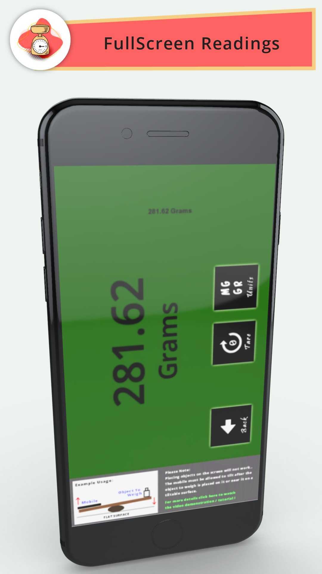 The app allows you to measure the weight of objects from 1 to 500 grams. To measure, place the item on an inclined surface near your device and wait for the results.