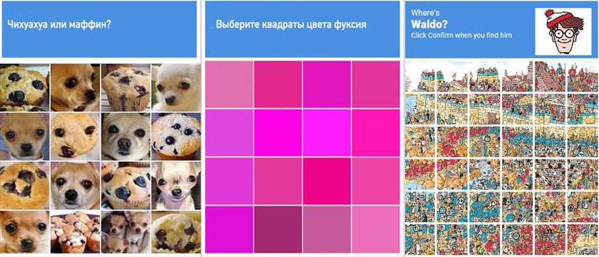 знаков на картинках или галочка напротив фразы «Я не робот».