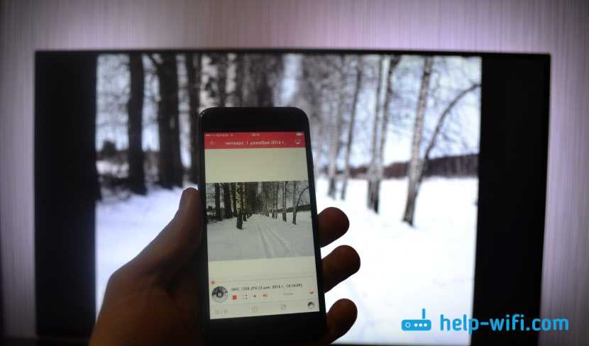 Дальше, с App Store на мобильное устройство нужно установить приложение, через которое мы будет отправлять фото и видео на телевизор. Так же, можно будет воспроизводить музыку на телевизоре с вашего iPhone.