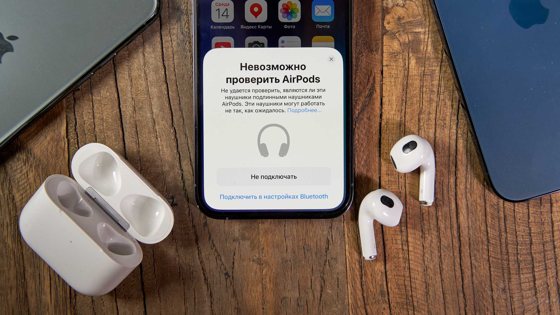 При подключении поддельных AirPods к айфону он предупредит, что это не настоящий аксессуар. Страшный сон продавцов фейковых наушников.