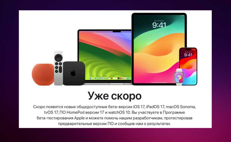 Для установки публичной бета-версии iOS 17 надо зарегистрироваться на сайте Apple в программе бета-тестирования. Это бесплатно и доступно для всех. Регистрироваться в программе надо с Айфона с браузера Safari. На официальном сайте Apple в разделе бета-тестирования уже сейчас написано, что вскоре для всех желающих будут доступны публичные бета-версии прошивок.
