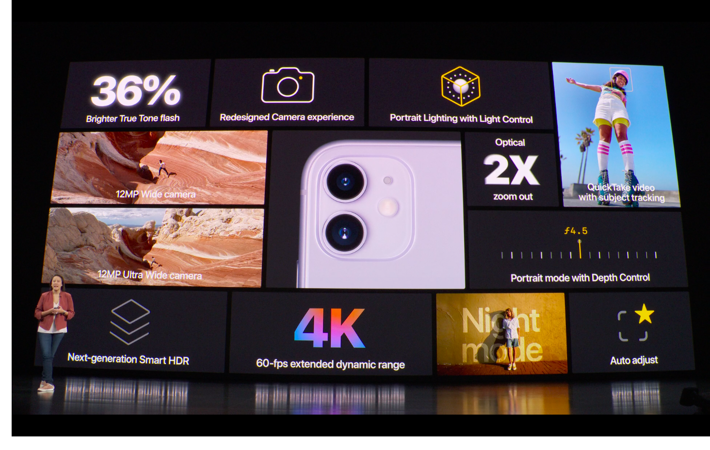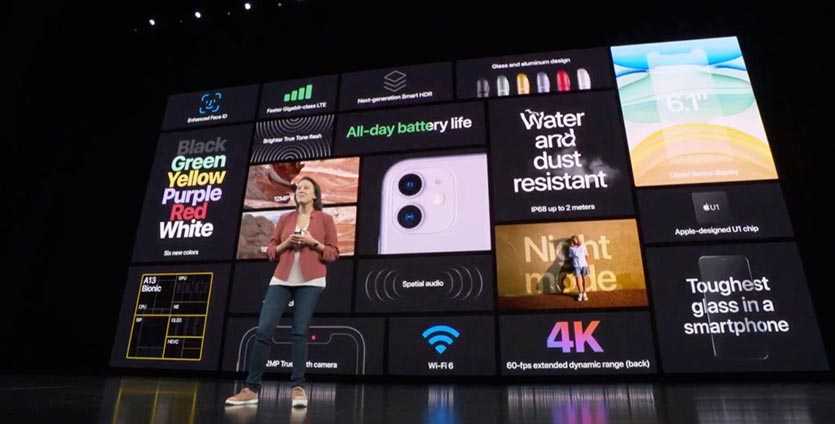 Как и ожидалось, самое сладкое оставили напоследок. Начали с замены iPhone Xr под названием iPhone 11. Слухи насчет названия полностью подтвердились.