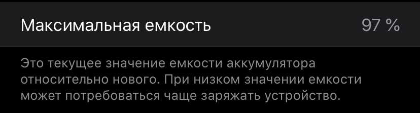 И если iPhone Xs Max начал терять свою ёмкость только спустя полгода и без функции Оптимизированная зарядка (после 80% уровень заряда повышается очень медленно, чтобы сократить износ батареи), то iPhone 11 уже остался с 97% емкости.