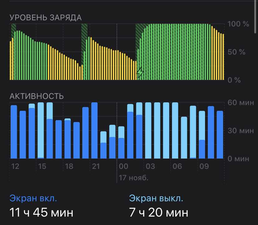 Казалось бы, Apple его ещё немного увеличила по сравнению с прошлым поколением, и все должно быть здорово. Но нет. Я с этого устройства постоянно работаю, среднее экранное время — 11 часов в день.