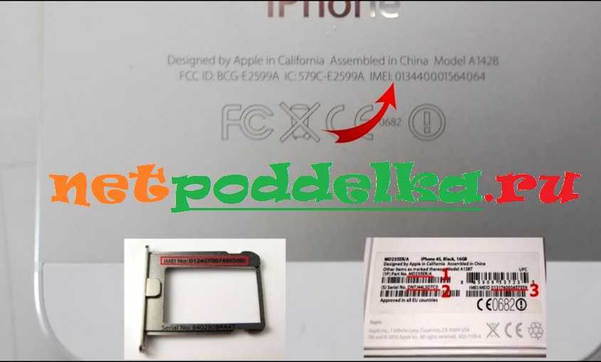 У ранних моделей iPhone (до 4 s) IMEI значится на коробке и на SIM-лотке. Оба номера должны быть идентичными. Если они отличаются — это 100% подделка.