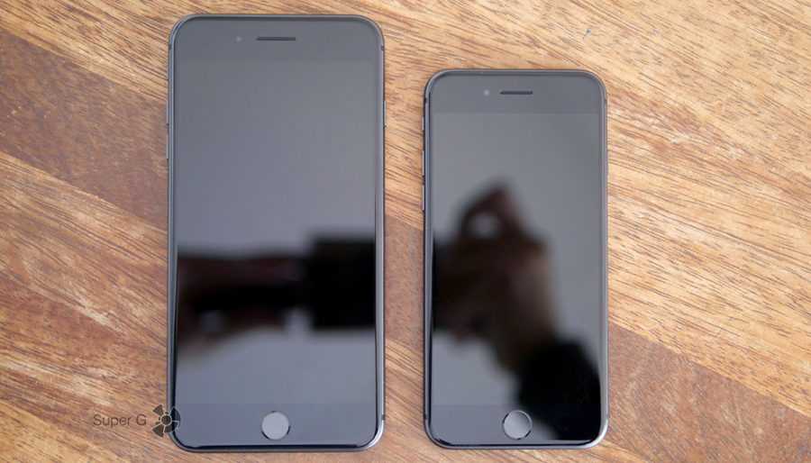 Если есть сомнения по поводу того, какой айфон выбрать, предлагаю посмотреть на фотографии ниже. Обычная восьмёрка и гигант-плюс на её фоне.