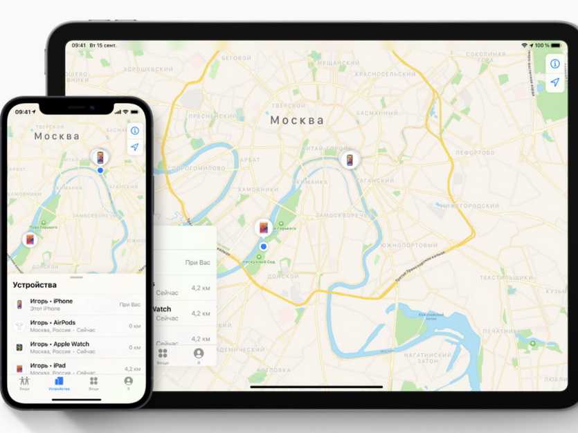 Все привязанные к учетной записи iCloud устройства отображаются на карте «Локатора» в режиме реального времени до тех пор, пока находятся в зоне действия Bluetooth смартфона или планшета, на котором осуществляется поиск.