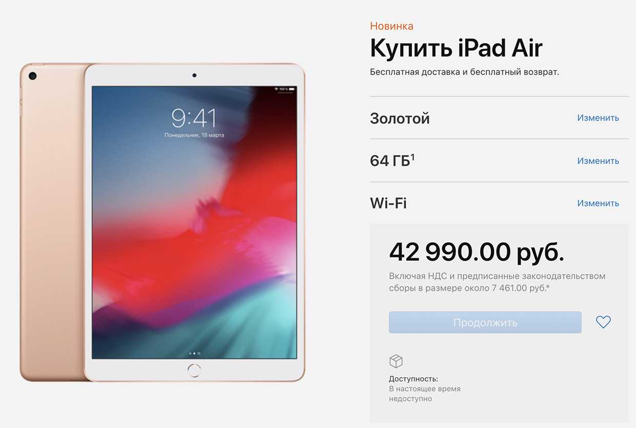 В России продажи iPad Air 2019 ещё не начались, обещают «скоро».