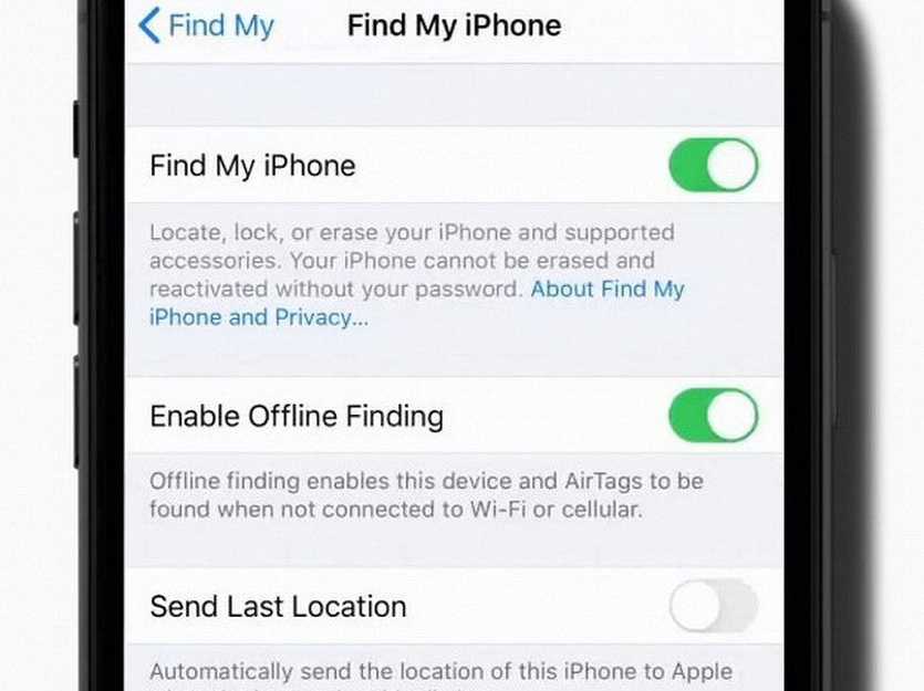 Включаем “Локатор” Apple. Иначе и мы бесполезны для метки, и она – для нас
