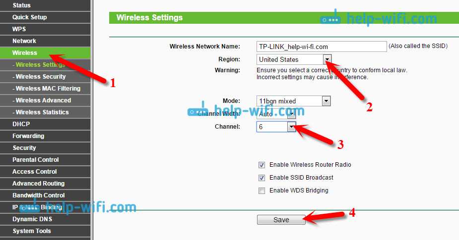 3 Изменяем канал и регион в настройках роутера. Это самый главный и как показывает практика эффективный способ решения проблемы с отсутствием Wi-Fi сети на устройствах от Apple. Нужно попробовать сменить канал вашей Wi-Fi сети. Такая проблема очень часто появляется там, где есть много беспроводных сетей. Так же, можно попробовать сменить регион на United States, который задается в настройках роутера.