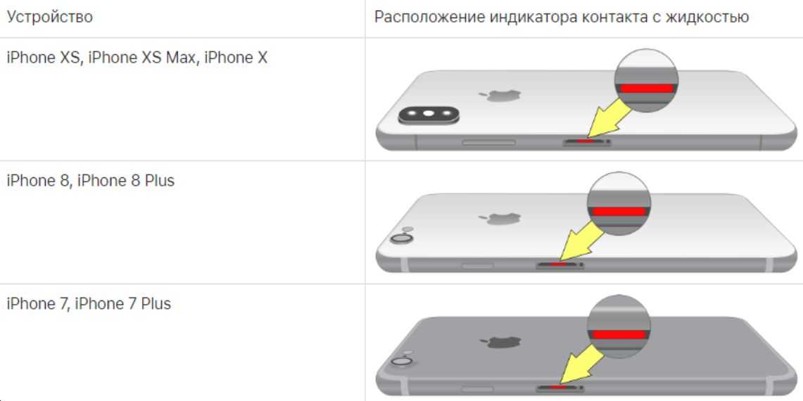 Обмануть техников из сервиса, назвав иную причину поломки, не выйдет – в iPhone, iPad или iPod Touch, начиная еще с 2008 года, установлены специальные индикаторы, подтверждающие факт контакта с жидкостью. Если индикатор выглядит также, как и на изображении выше, то о гарантии стоит сразу же забыть.