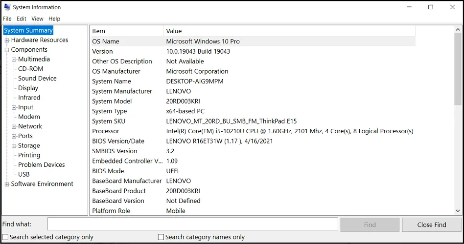 Сводка системы — это лишь часть доступной здесь информации, поэтому вы можете выбрать любую категорию в списке на левой панели, чтобы увидеть больше данных на правой панели.