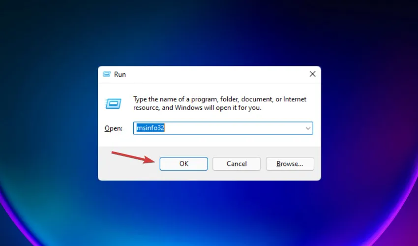 - Введите msinfo32 и нажмите Enterили щелкните OK.