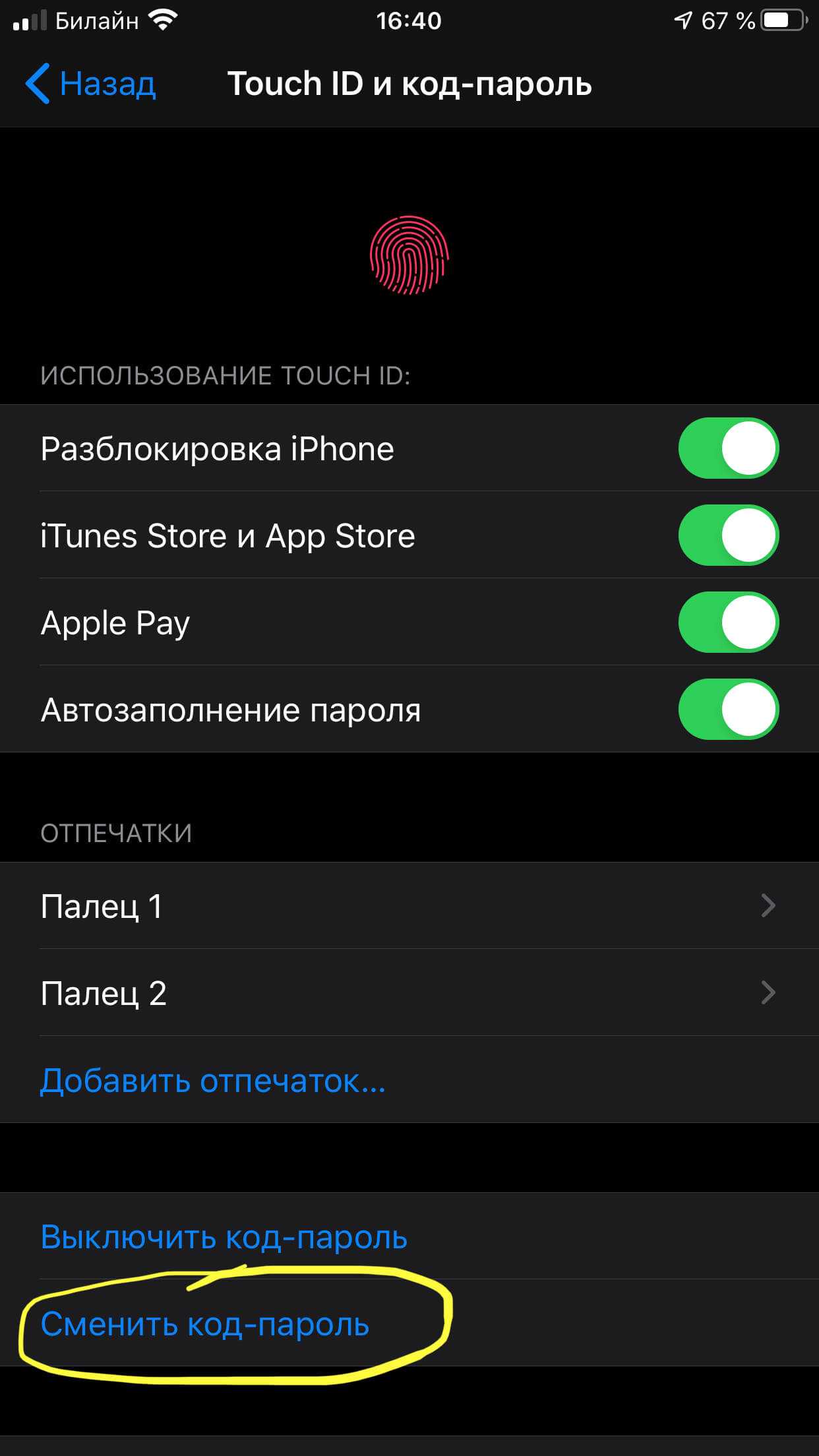 После того, как код блокировки будет обновлён, можно снова пользоваться опциями Touch ID и Face ID, в ряде случаев это быстрее и удобнее, чем вводить пароль.