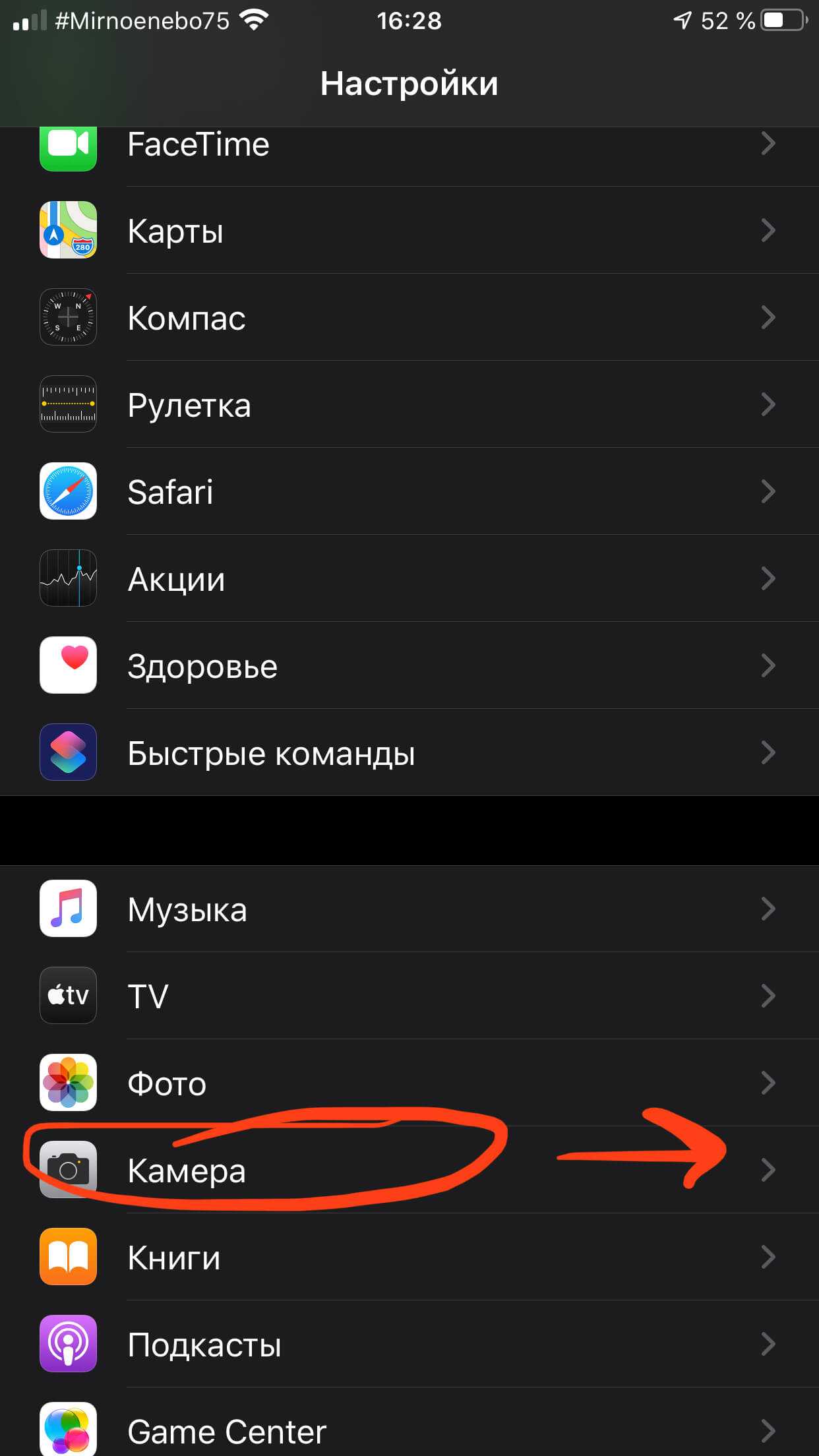 - Откройте настройки iPhone и перейдите в раздел «Камера».