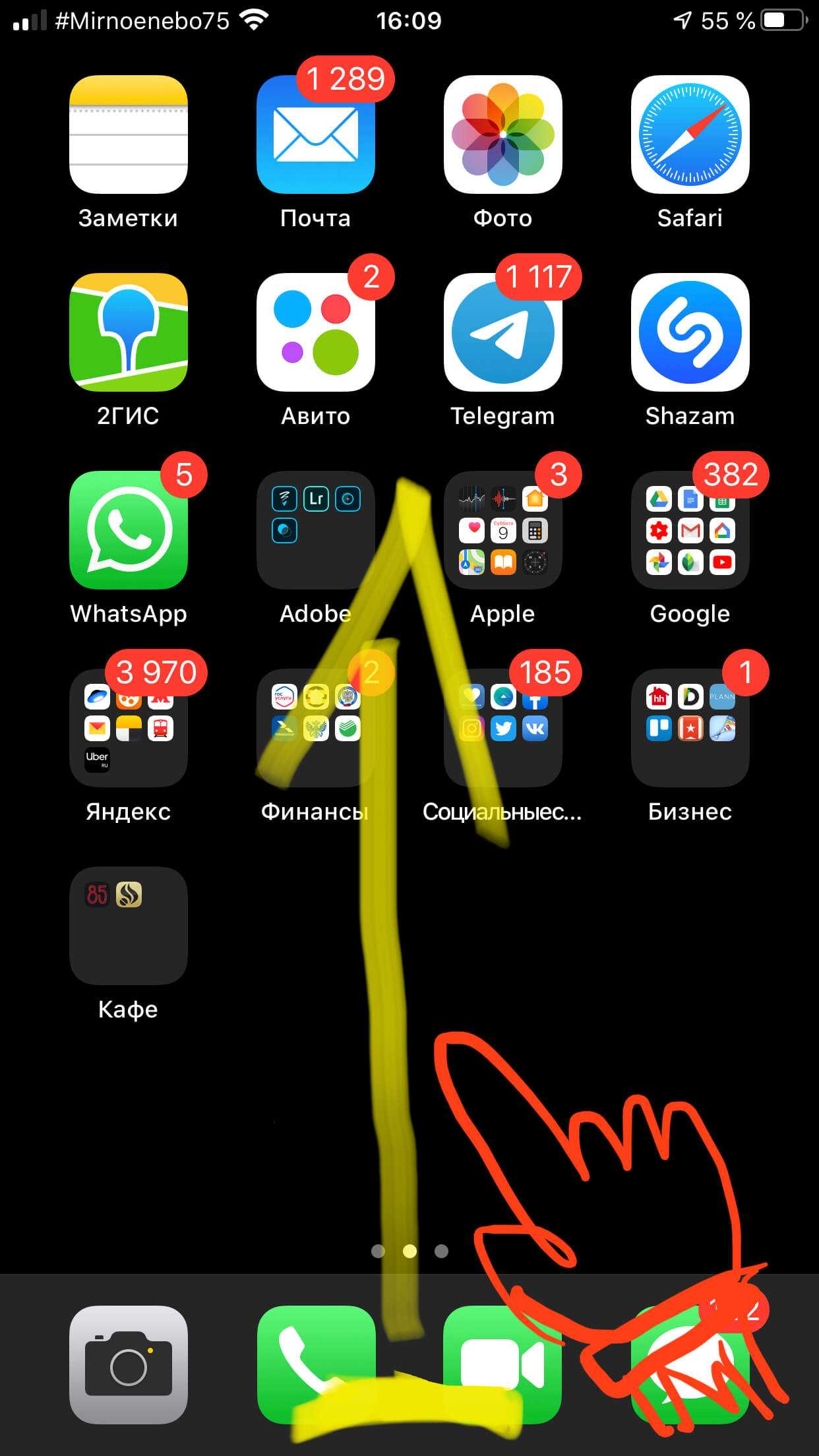 Рисунок 9. Свайпаем пальцем вверх с нижней части главного экрана.