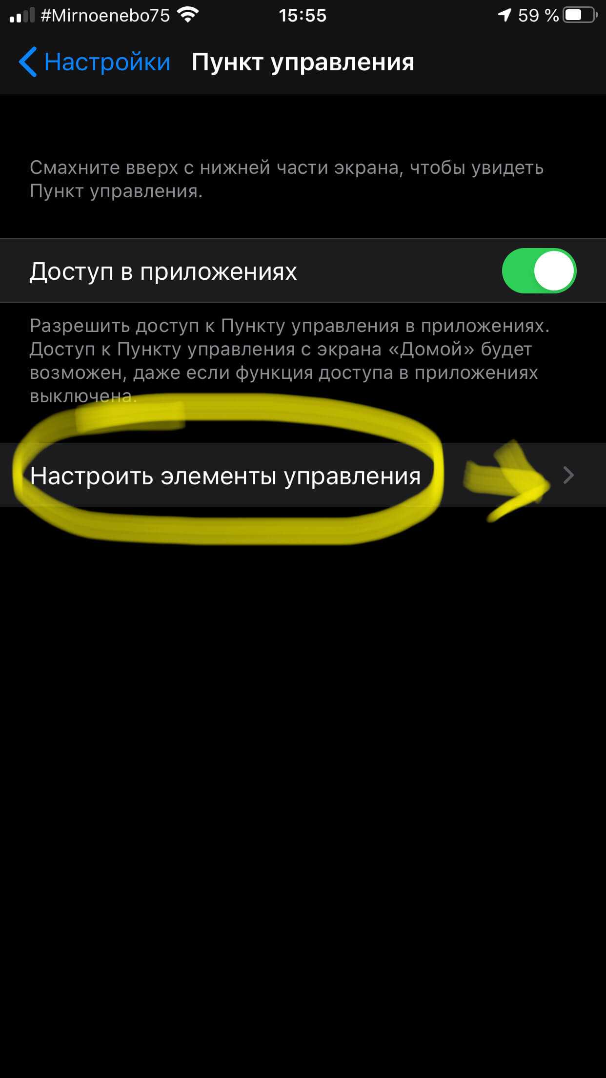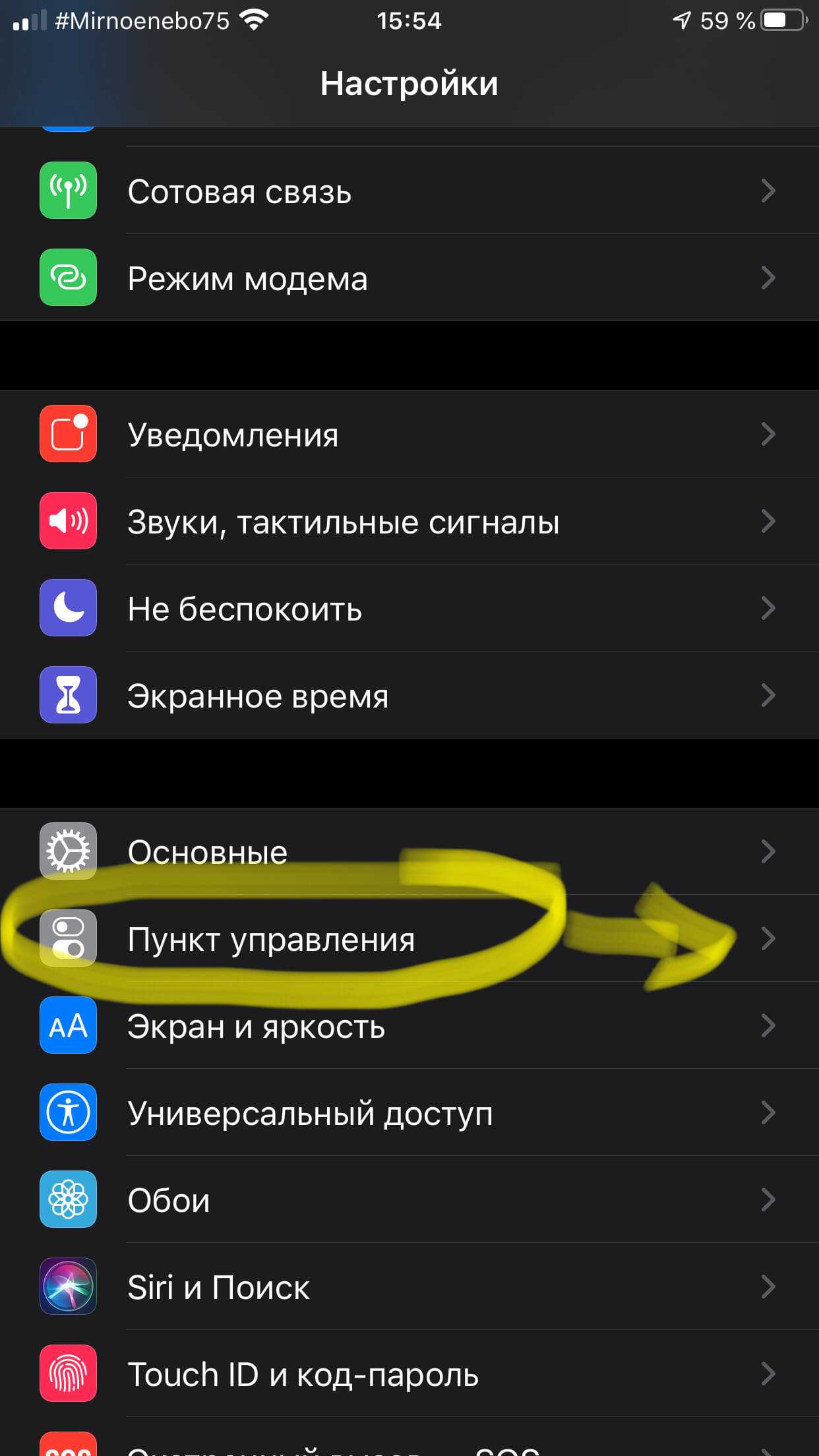 Для этого необходимо зайти в настройки и перейти в раздел “Пункт управления”