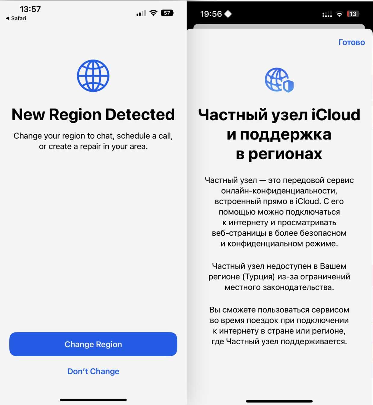 В какой-то момент смартфон сам предложил поменять регион, а Частный узел отказался работать и в Турции