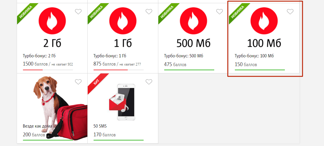 - Следует купить пакет мегабайтов за бонусные баллы. Самая развитая бонусная система у МТС. Например, для приобретения у этого оператора 100 Мб сверх основного пакета достаточно потратить 150 бонусов, 100 из которых можно получить, просто пройдя соцопрос на официальном сайте МТС.