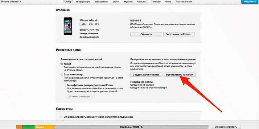Восстановление из копии iCloud