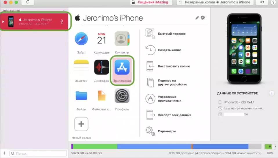 Так вы сможете создать локальный бекап любых приложений и игр с iPhone для дальнейшего переноса на новое устройство.