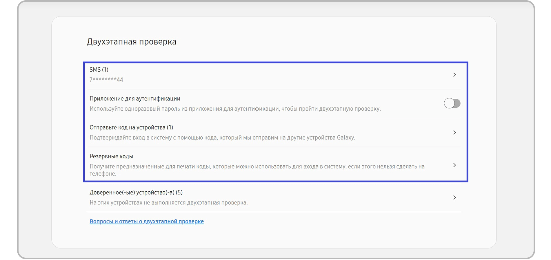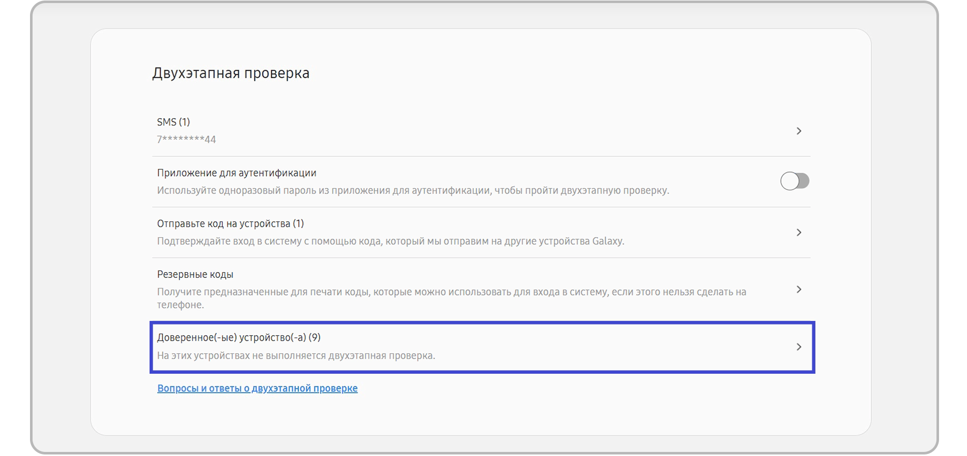 *Доверенные устройства: устройства, для которых при авторизации был установлен флажок «Пропустить двухэтапную аутентификацию на этом устройстве в следующий раз».