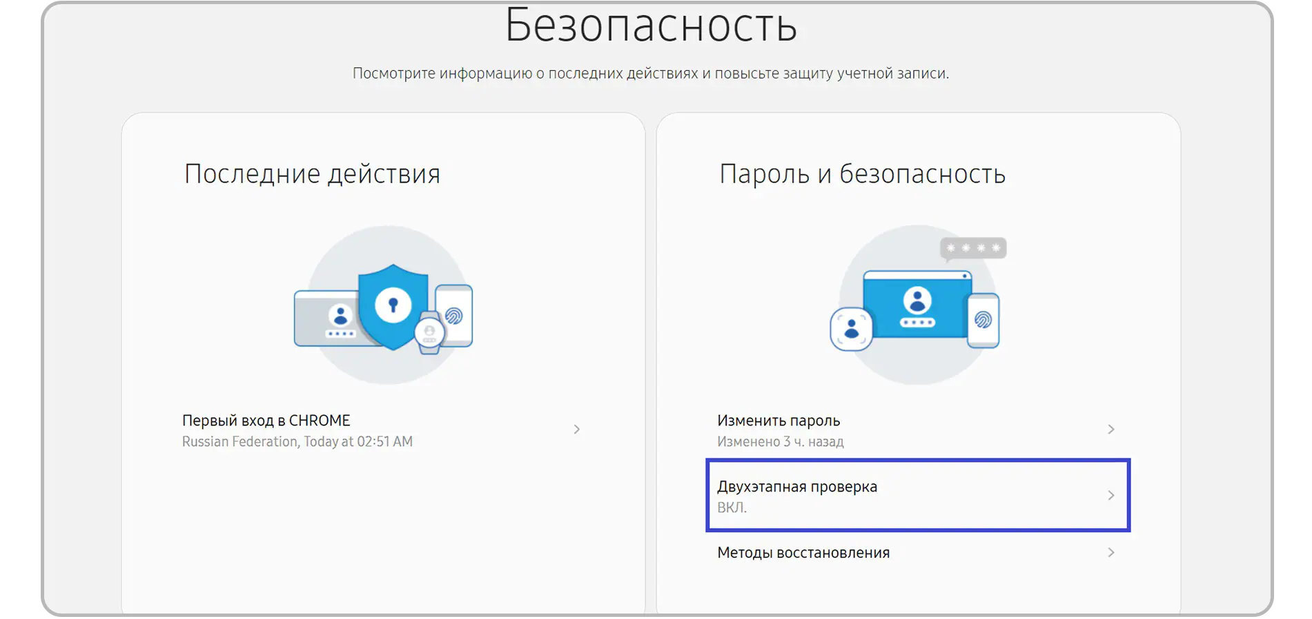 В браузере можно настроить все те же двухэтапные методы проверки, что и в настройках смартфона.