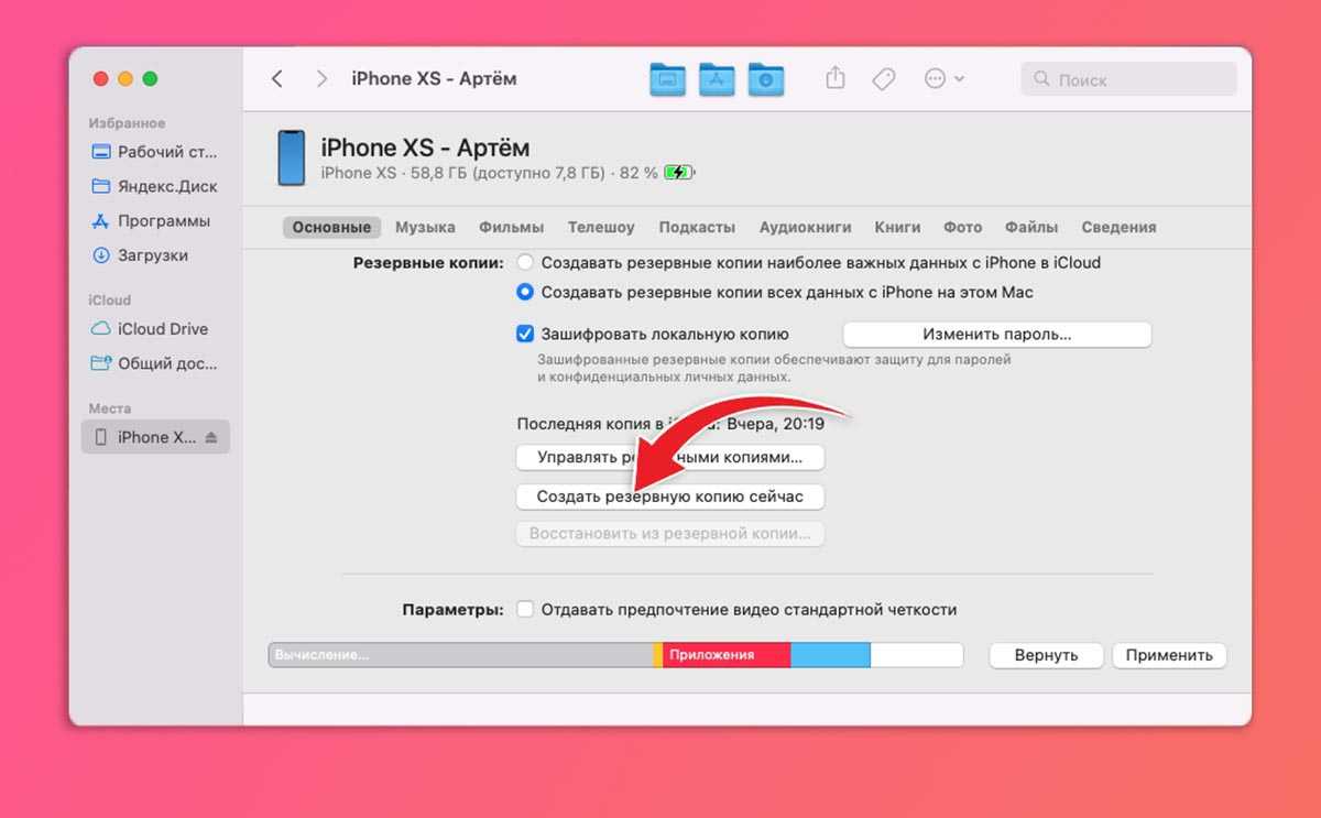 Обязательно сделайте актуальную резервную копию данных на случай, если что-то пойдет не так. Это может быть как локальный бекап на компьютере, так и облачная копия в iCloud.