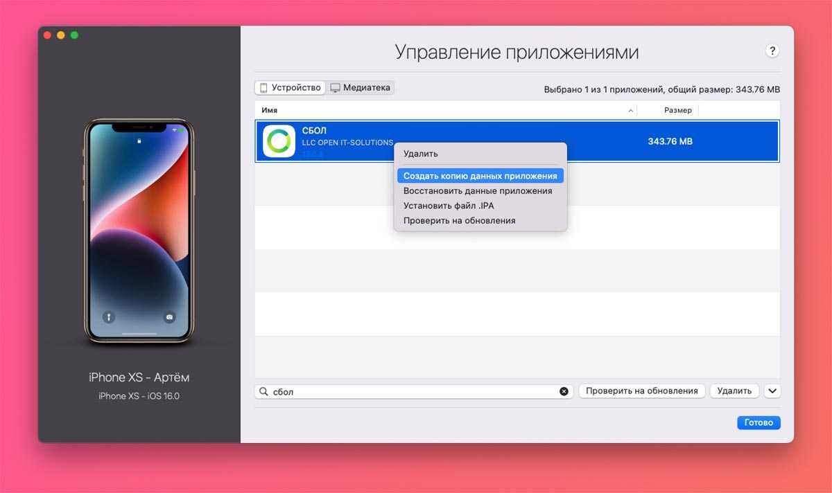 Так вы сможете создать локальный бекап любых приложений и игр с iPhone для дальнейшего переноса на новое устройство.