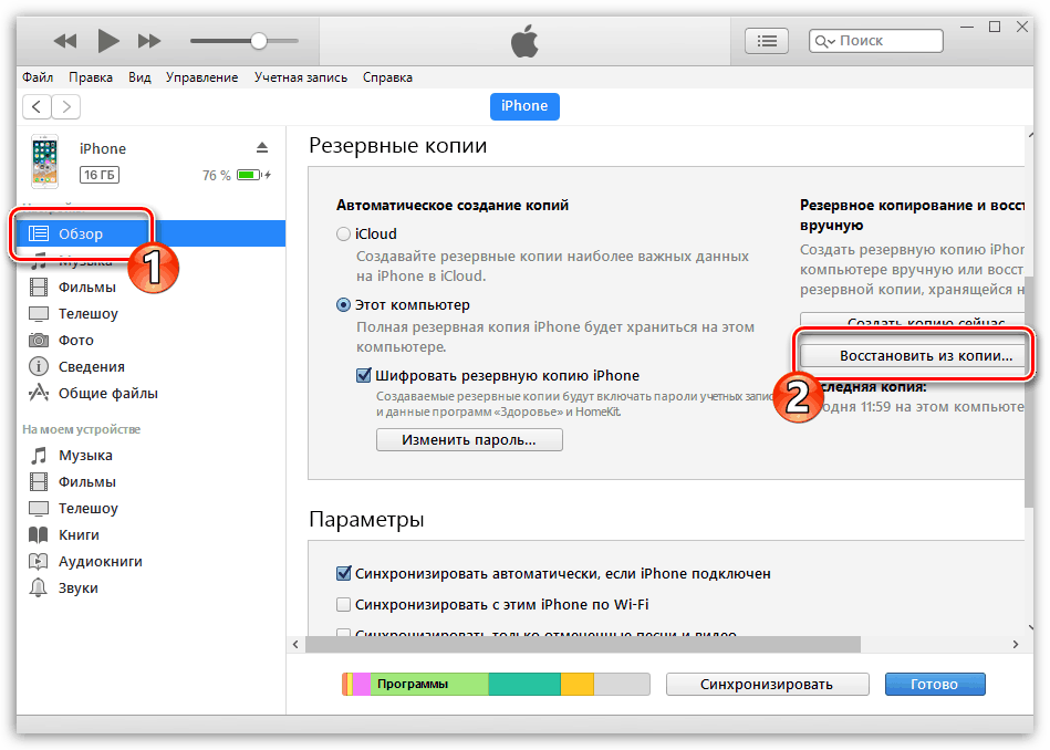 - Восстанавливается на другом устройстве (как это сделать с помощью iCloud — ссылка есть выше, а с помощью iTunes — читаем здесь).
