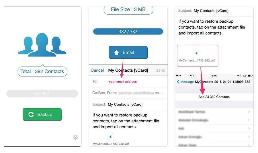 Существуют также программы для сохранения контактов в некий файл типа «.vcf». Такой файл можно легко перемещать на любое устройство (в том числе и компьютер), а при необходимости экспорта просто запускать его. В принципе как интерфейс, так и функциональность любого такого софта очень схожи с iCloud и iTunes. Наиболее популярными альтернативами являются: