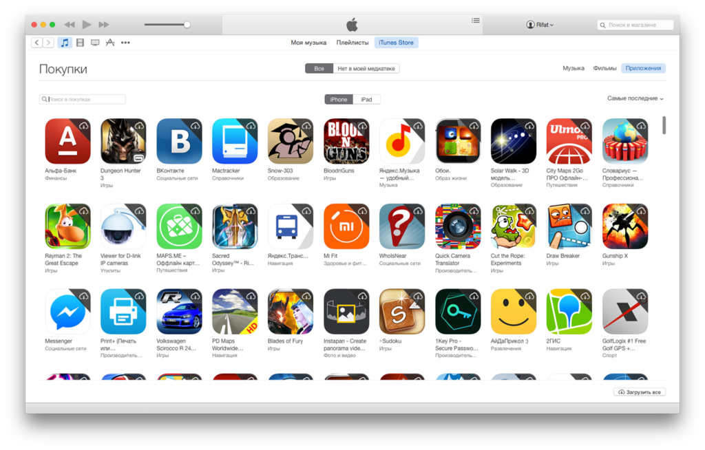 Для начала нам нужен любой компьютер, с установленным iTunes — с iPhone такой финт не провернуть Далее нам нужно зайти в iTunes Store и войти в , если вы этого еще не сделали. После этих несложных манипуляций, нажмите на Покупки, нажав на свое имя в правом верхнем углу iTunes: