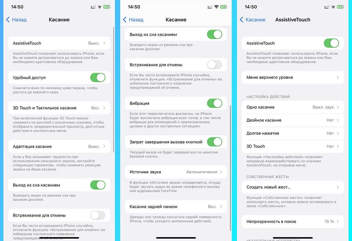 Как включить и пользоваться: откройте раздел Настройки — Универсальный доступ — Касание и настройте нужные опции.