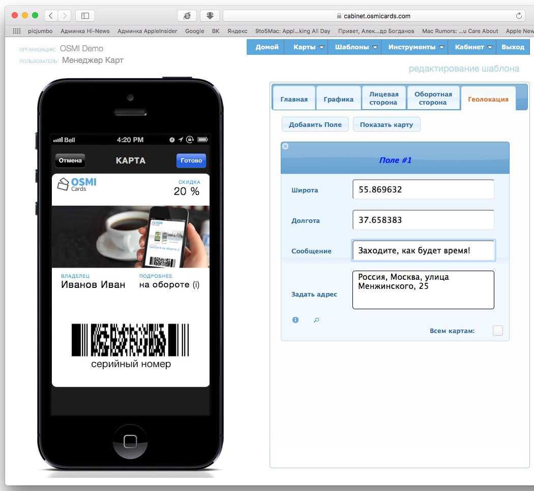 . Это условие необязательно, но в целом универсально для большинства компаний: точно так же получают обычные физические карты лояльности. Разница этой анкеты с теми, что вы заполняли сотни раз – в наличии любопытного пункта, предлагающего получить электронную версию карты на смартфон. Под ней и подразумевается карточка для Passbook.