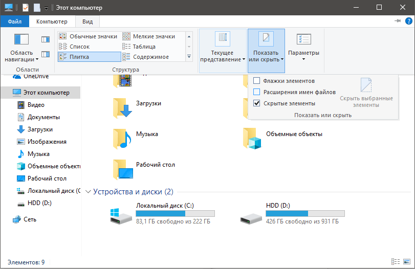 Шаг 1. Заходим в Проводник и вверху выбираем «Вид» → «Показать или скрыть» → ставим галочку напротив «Расширения имени файла».