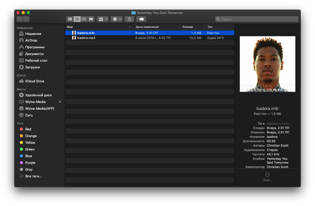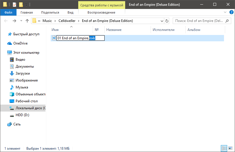 Затем вернитесь в iTunes и удалите этот «огрызок» песни из него, но файл оставьте на месте. Откройте ту папку Finder, где у вас хранится отконвертированная укороченная версия вашей любимой песни. Она будет в формате .m4a. Переименуйте её так, чтобы разрешение трека было в .m4r: