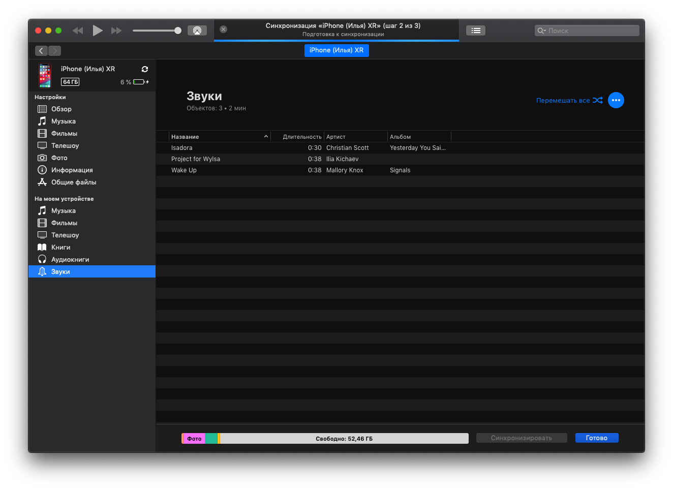 Теперь осталось лишь синхронизировать звуки и медиафайл появится на iPhone.