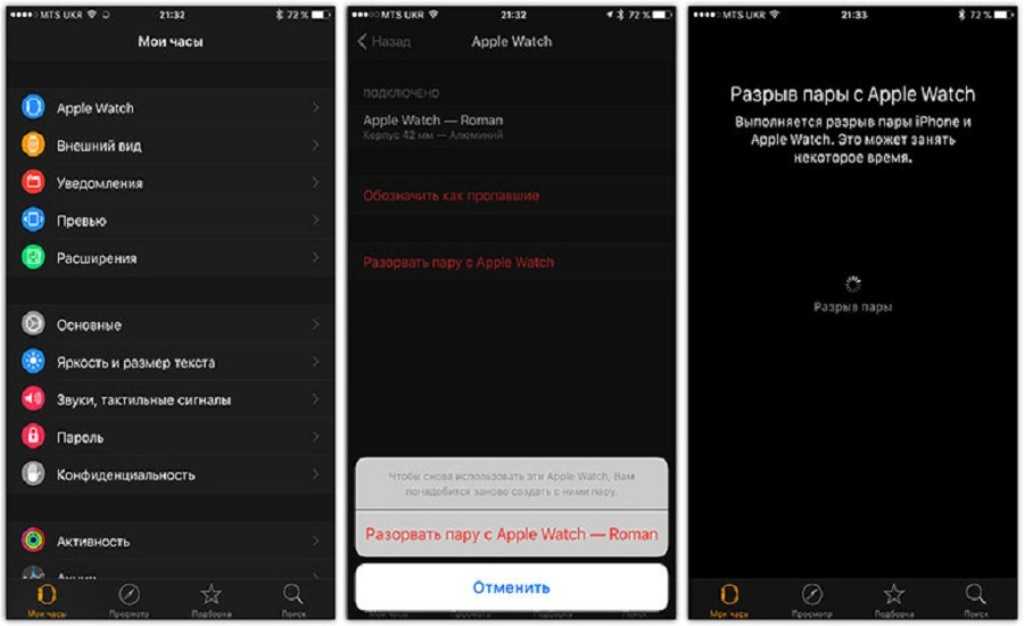 Даже если старого смартфона нет, и информация с него стерта, смарт-часы могут продолжать находиться с ним в паре. Для разрыва связки требуется: