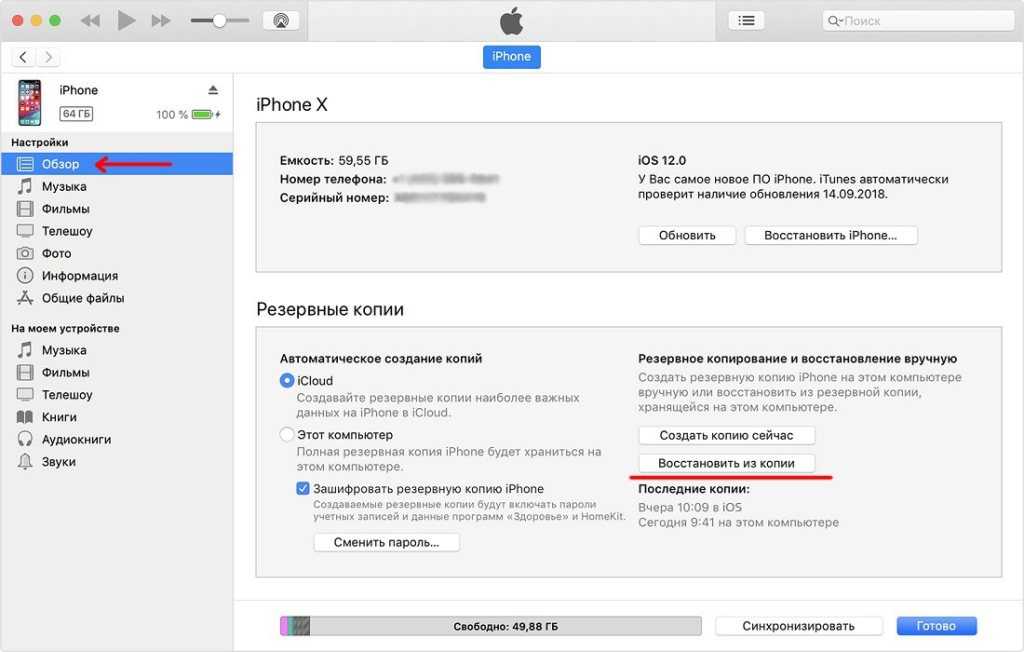 Но я предпочитаю делать локальную резервную копию данных на Mac, так как из нее восстанавливаться в разы быстрее, чем из облачной. Для этого запускаем iTunes, подключаем iPhone, переходим во вкладку «Обзор» и вот тут есть очень важный нюанс: ОБЯЗАТЕЛЬНО ЗАШИФРУЙТЕ РЕЗЕРВНУЮ КОПИЮ!