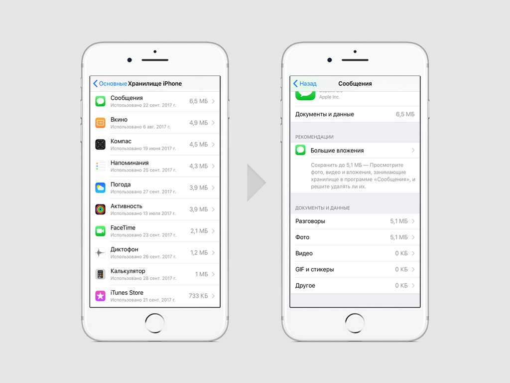 iOS 11 упрощает работу с памятью, которую занимают диалоги и вложения в iMessage. После обновления операционной системы вы сможете очень гибко контролировать емкие цепочки сообщений и файлы, удаляя старые и бесполезные.