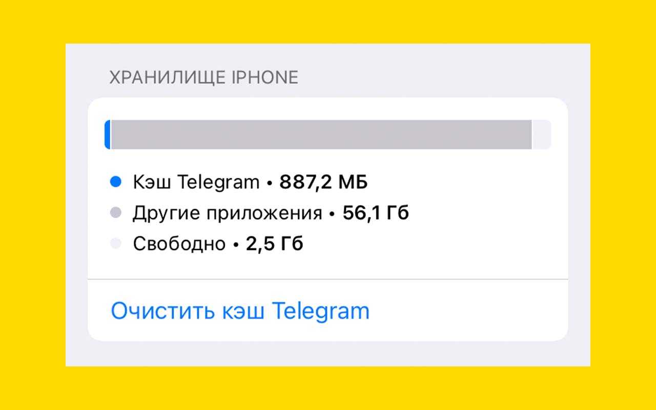 В Telegram заходим: Настройки → Данные и память → Использование памяти
